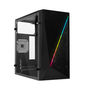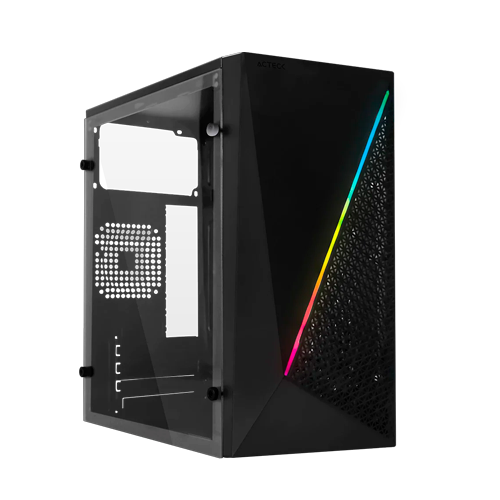 Gabinete Micro-ATX con panel frontal malla y laterales en cristal templado,
