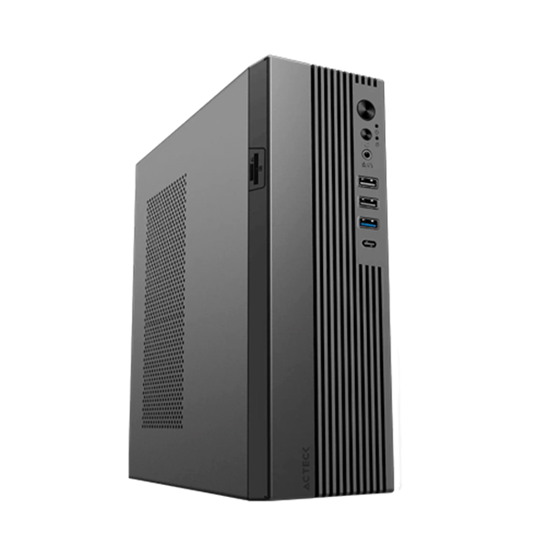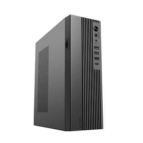 Gabinete tipo slim para sistemas compactos, ideal para oficina o entornos reducidos.